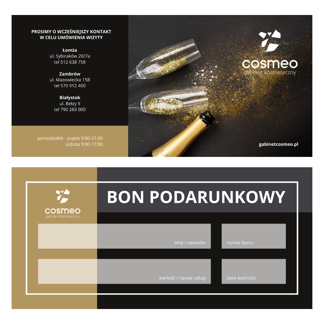 Bon do wykorzystania w Cosmeo: Białystok, Łomża oraz Zambrów.